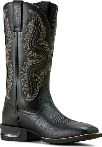 Classic Western style meets modern comfort in this cowboy boot made from full-grain leather with Shock Shield® Max impact-absorbing technology built into the horseman heel. Traditional six-row flame topstitching and curved insets amp up the rodeo-ready vibes, while the cushioned insole and ergonomic support ground the style in all-day comfort from long days tailgating and late nights out with friends.