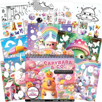 FASHION ANGELS: CAPYBARA & CO. COLLAGE ACTIVITY SET - The Fashion Angels Capybara & Co. Collage Activity Set lets kids create magical worlds filled with capybaras, castles, sweet treats, and colorful fantasy lands! The playful capybara theme adds a charming, whimsical twist that sparks imagination from the very first page. With 8 sticker sheets, 10 sticker-by-number posters, and 15 drawing pages, this spiral-bound portfolio offers endless ways to design and decorate enchanted scenes. The variety of activities keeps kids engaged longer while encouraging creative exploration and problem-solving. Kids can follow guided pages or mix and match stickers to express their creativity while building fine motor skills. Peeling, placing, and drawing help strengthen hand-eye coordination in a fun, low-pressure way. Perfect for ages 6 and up, this screen-free craft kit is ideal for travel, playdates, and quiet afternoons. The compact, spiral-bound design makes it easy to take creativity on the go without losing pages or pieces. Fashion Angels inspires creativity and confidence through fun, hands-on activities for young artists everywhere!