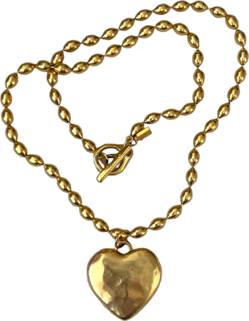 Gritty meets girly This necklace has a 19.5" 12k antiqued gold plated brass vintage ball chain, a hand-carved 12k antiqued gold plated pewter heart pendant, and a mini 12k antiqued gold plated pewter toggle clasp
