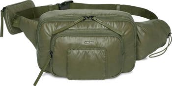 - Adjustable belt/crossbody strap with squeeze buckle