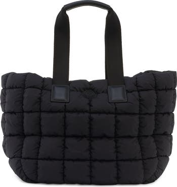 Inspired by the label's iconic puffers, this tote is made from box-quilted water-repellent nylon and boasts a trapezoid silhouette with a spacious interior.