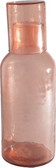 Form meets function in these stunning glass carafes. Each is handblown from recycled glass then meticulously hammered by hand for a truly unique finish. The set includes a carafe and lid that doubles as a small drinking glass.