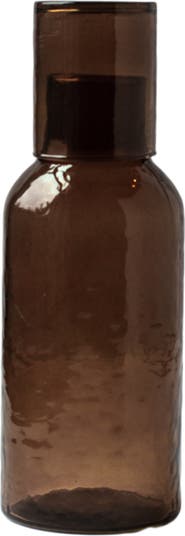 Form meets function in these stunning glass carafes. Each is handblown from recycled glass then meticulously hammered by hand for a truly unique finish. The set includes a carafe and lid that doubles as a small drinking glass.