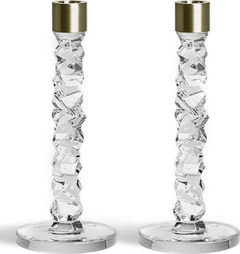 Carat Set of 2 Medium Crystal & Brass Candlesticks