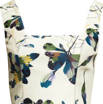 Painterly florals bring an artful, abstract finish to this contemporary crop top styled with a square neckline and sculpted seams for a close, structured fit.