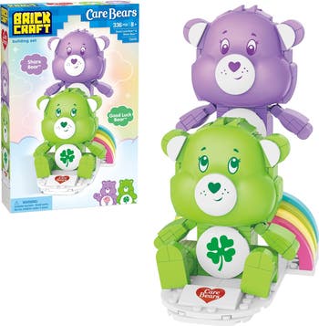 Good Luck Bearâ„¢ and Share Bearâ„¢ team up in a vibrant brick-built display that's full of Care Bears charm. Stacked in a playful pose on a rainbow base, these two bring a burst of color and personality to any shelf. Printed belly badges, bright character colors, and authentic shaping capture their classic look, making this a cheerful build that's as fun to make as it is to display.