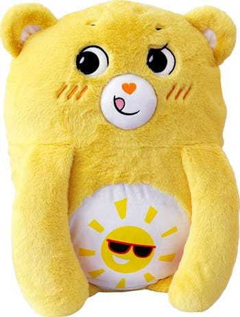 CARE BEARS: PILLOW POCKET PALS - FUNSHINE BEAR - Happy Nappers Care Bears Pillow Pocket Pals are your child's new best friend and snuggly companion. Simply add one standard pillow and they are ready to hug. Happy Nappers Care Bears Pillow Pocket Pals have pockets for your hands to place inside. The material is soft to touch on the outside and super soft to hug on the inside. Hug and Squeeze them over and over again. Feel their weighted paws for soothing fidget comfort. The Paws can rest on your head when it's time for bed or just a fun fidget to squeeze and play all day. Made by Jay at Play the creators of Happy Nappers. (Fits Standard Pillow - Not Included) . Trusted Retailer - Manufactured by Jay at Play, The Creators of Happy Nappers.
