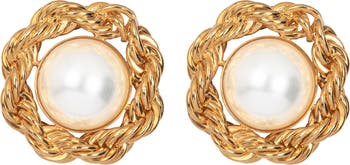 These handmade drop earrings feature faux pearls glowing in twisted rope chain settings to elevate your look with classic shine and texture.