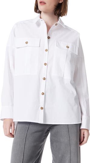 Dual cargo pockets lend workwear attitude to this button-up top that checks off the boxes for relaxed but polished style.