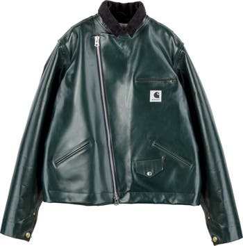 Sacai Carhartt WIP Leather Jacket, Alternate, color, Green