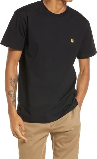 Golden logo embroidery is the sign of high-quality casual workwear on a solid crewneck T-shirt cut from midweight combed-cotton jersey.
