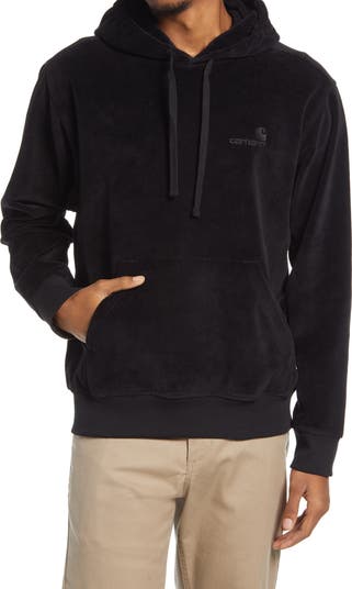 Stretchy cotton velour elevates the look and comfort of a hoodie sporting an embroidered chest logo and a fit that's perfect for layering.