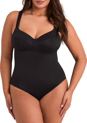 One-piece swimsuit in smooth microfiber with underwire and foam cups for support and shape. Adjustable cross-back tie straps provide a secure, customizable fit.