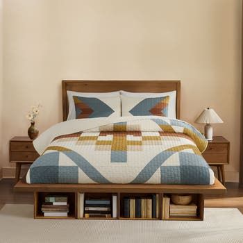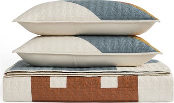 Give your bedroom retreat a cozy makeover with the distinctive pattern of this set of a lightweight quilt and pair of matching shams.