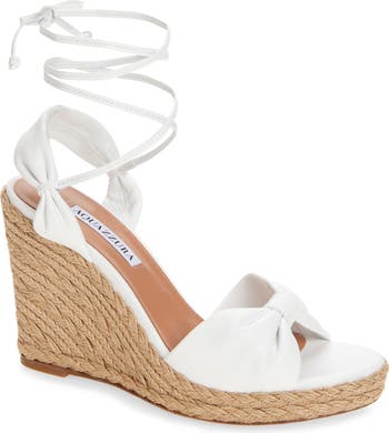 Crafted from creamy Italian leather in an espadrille silhouette, this tasteful wedge sandal is delicately secured with a wraparound ankle strap.