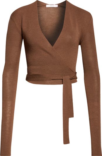The Italian label refines your rotation of sweaters with this wrap-inspired version updated in a close-fitting, cropped silhouette finished with a slender tie belt encircling the waist.