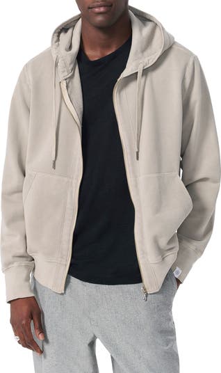 Herringbone tape does the talking on this elevated zip hoodie, etching out sleek, tonal trails from hood to hem and adding quiet intrigue to the split kangaroo pocket and center back.