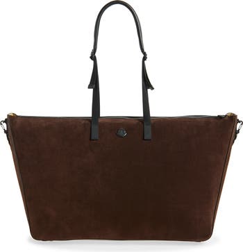 A tonal logo and embossed lettering at the base bring signature Moncler flair to this elevated carryall made from velvety suede and topped with padded adjustable handles. A removable shoulder strap offers an additional carrying option.