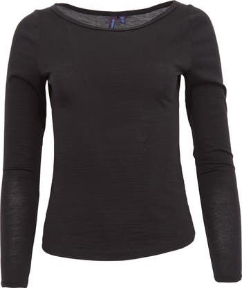 Lords of Harlech Carly Merino Long Sleeve Boatneck Shirt, Main, color, Black
