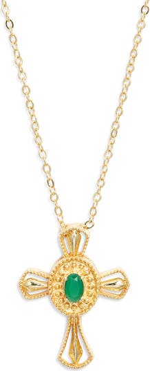 Carmel Emerald Cross Pendant Necklace