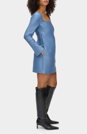 Contemporary and versatile, this smooth satin minidress features clean-cut edges and convenient on-seam pockets.