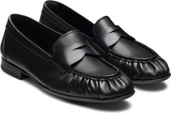 A moc toe adds a subtle textural detail to this smooth leather penny loafer grounded by a cushy, arch-supporting footbed.
