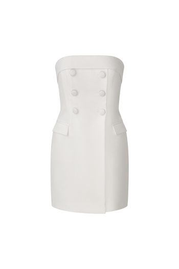 A polished dress in snow white with a clean, contemporary silhouette. Crafted from lightweight polyester for refined drape and comfortable movement, ideal for elevated warm-weather occasions.