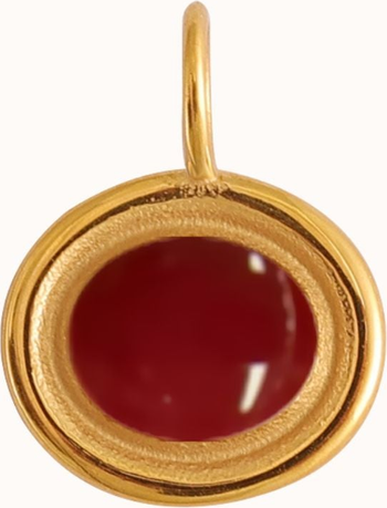 The Carmen Pendant features a small charm with a choice of coloured enamel at its center, elegantly framed.