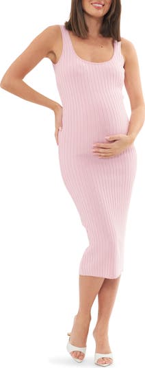 Just as effortless as it is essential, this goes-with-anything tank dress features a sleeveless silhouette with a super stretchy, full fashioned knit fabrication, making this dress perfect for your growing bump. Fitted Fully fashion knit Scoop neckline Ribbed knit Sleeveless Non nursing 72% Viscose, 28% Nylon Length : 113cm (size small)