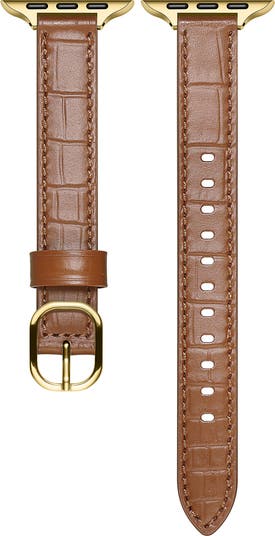 The ultraslender silhouette of this croc-embossed leather band brings the perfect touch of personalization to your Apple Watch. The watchband comes with two pairs of connectors that enable it to fit any model of Apple Watch.