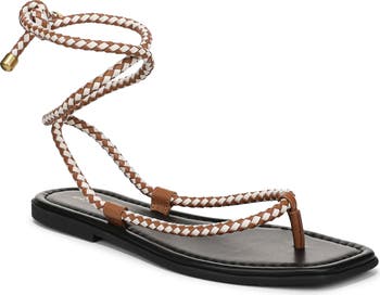 Braided wraparound straps provide a sophisticated update for this breezy go-to sandal.