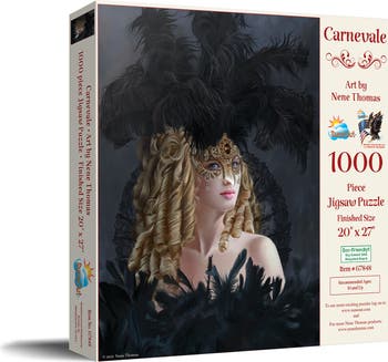 Step into a realm of mystery and allure with the Carnelvale 1000 Piece Jigsaw Puzzle by SunsOut Inc. Designed by the talented artist Nene Thomas, this puzzle captures the breathtaking elegance of a fantasy dance, promising an engaging challenge perfect for adults seeking a moment of creative escape. Crafted with precision, each piece interlocks securely, made using finest recycled cardboard for durability and ease of use. These puzzles, made in the USA, embrace eco-friendly practices through the utilization of soy-based inks and high-quality recycled board, reflecting the commitment to providing entertainment that's mindful of nature and art. SunsOut assures quality and customer satisfaction, standing behind their products with a guarantee for any missing or damaged pieces. The Carnelvale puzzle doesn't just make for a delightful pastime, but also serves as a thoughtful gift for birthdays, holidays, or any special occasion. Immerse yourself in the enchanting fantasy world, engage your mind, make a positive impact on the environment and lose yourself in this stunning jigsaw puzzle - a radiant addition to any puzzle collection.