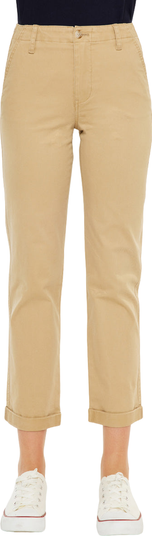 Designed with a high-rise waist and a slim, tailored leg, these chino pants offer a streamlined silhouette that contours through the hip and thigh. The clean structure is balanced by subtle stretch, creating a polished look that transitions seamlessly from casual to refined styling. A cropped length with a folded hem adds a modern finish suited for everyday wear.