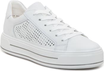A flurry of perforations scatter on the sides of a casual-cool sneaker traced with metallic piping and cushioned by HighSoft technology.