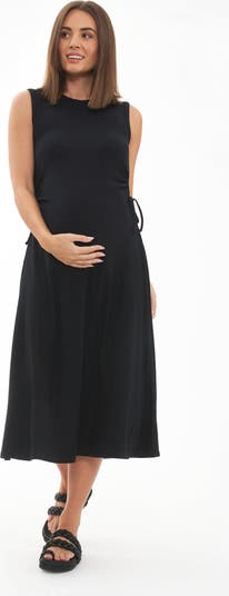 Introducing Carol. She’s kind of dressy, comfy, and has just the right amount of stretch and skin on show. Made from a fine rib knit with cut-out details on the sides, this midi dress subtly exposes your bump with adjustable ties at the waist – and is the perfect day-to-night staple. Instantly elevate this finely ribbed dress with strappy heels and statement jewellery.