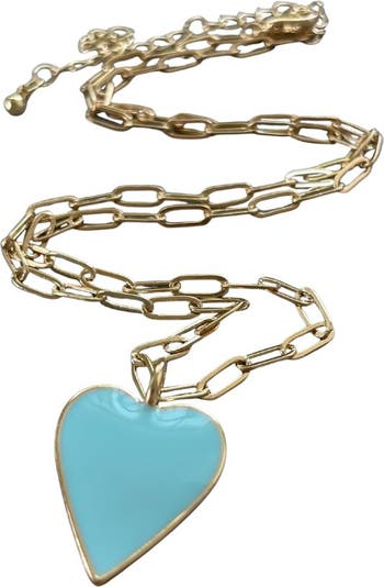 Create a romantic look with our Carolina blue enamel heart necklace on a gold paperclip chain. Feminine and classic, heart necklaces are classic staples to show just how big you love. Layer it or let it shine on its own - either way you'll be hearing "Where'd you get that?" every time you wear our hearts on your chest.