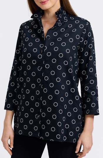 An essential button-up is made with a just-roomy-enough fit and an allover circle print for a look that's ready for regular rotation in your OOTDs.