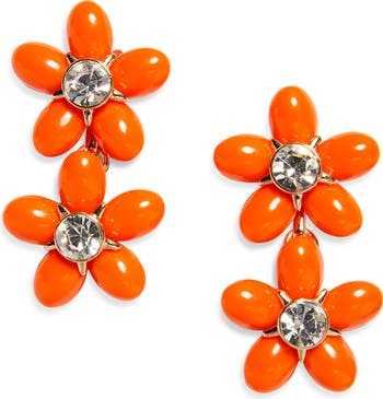 Drops of twin gilded flowers embellished with crystals bring playful shine to these bulbous-bloom statement earrings.