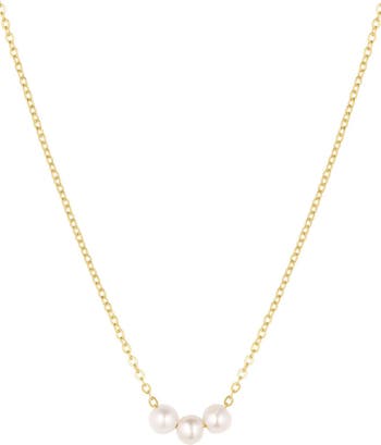 A trio of genuine freshwater pearls adds to the delicate appeal of this handcrafted necklace.