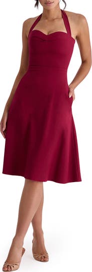 Sip cocktails or hit the dance floor in this halter minidress featuring convenient on-seam pockets.