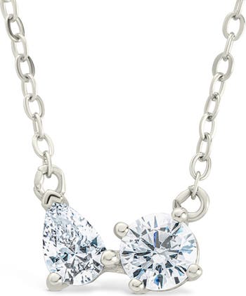 Pear-cut and round cubic zirconia stones center an elegant chain necklace that brings instant sparkle to your neckline.