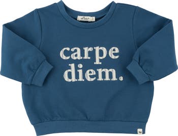 Seize the day in style with the oh baby! Brooklyn Boxy Sweatshirt. This relaxed-fit pullover features an inspiring "carpe diem." print that keeps your little one's vibe effortlessly cool. Perfect for layering through the seasons. Available in infant, toddler and boys sizes. Designed in Minnesota.
