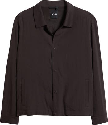 A handsome relaxed-fit shirt jacket made from a breathable linen blend provides lightweight layering when you're driving to work or out with friends on chilly days.