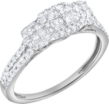Sleek and radiant the Carrea Glow ring features 0.55 carats of natural diamonds set in polished 10K gold. A rectangular multi stone cluster centerpiece creates bold structured brilliance. Pavé diamonds along the band add elevated sparkle for a refined look. Diamond carat weight may vary up to 0.05 carats from the stated weight.