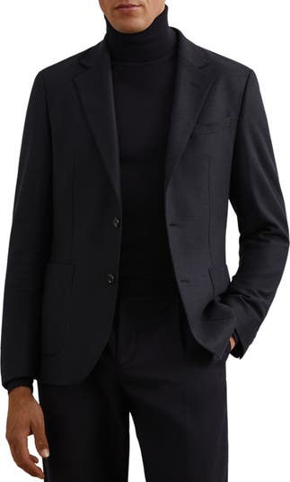 Pickstitching traces the expertly tailored silhouette of a wool-enriched jacket offered with patch pockets.