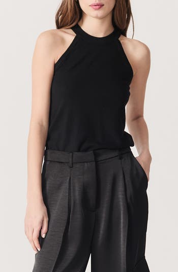 A halter neck adds elegant structure to this sweater tank that rest gently against the body and looks chic both tucked and untucked.