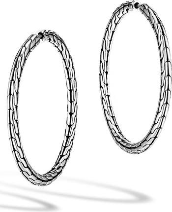 Signature etchings pattern tubular sterling-silver earrings designed with hidden post closures for a streamlined look and uninterrupted shine.