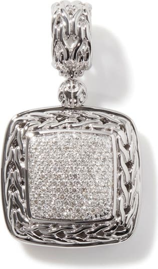 The signature woven chain frames stunning pavé diamonds at the center of this handcrafted necklace.