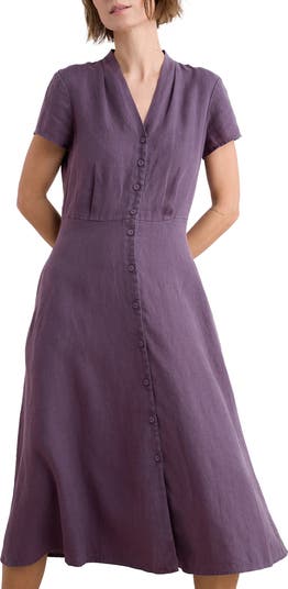 Linen fabrication offers a breathable fit and feel in this buttoned midi dress inspired by '40s fashion for a retro spin on your everyday look.