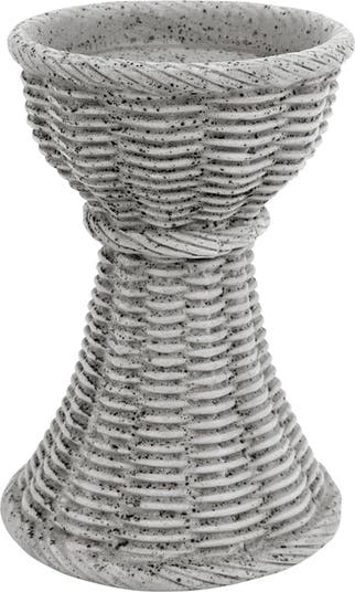This handsculpted candlestick has a soothing and serene basketweave-inspired design.
